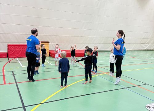 Det är söndag eftermiddag och det är full fart i sporthallen i Virserum. I januari startade en ny grupp Bamsegympa för barn födda 2021-2022. -Just nu när vi 12 barn och fyra ledare, berättar Kajsa Rydén som tillsammans med Martin Johansson, Lama Alghazali och Alice Össmar har hand om gruppen.